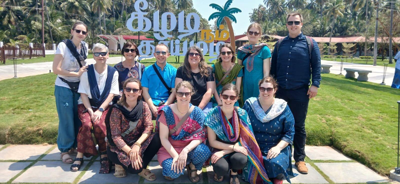 Am 15. Februar landete unsere Reisegruppe, in drei Kleingruppen aufgeteilt, am Flughafen Madurai. Shamila, die Generalsekretärin des YMCAs Madurais, begrüßte uns mit Blumen und dann ging es direkt zum YMCA International Guest House, unserem Zuhause für die erste Woche. Von dort aus erkundeten wir die Umgebung, besuchten den berühmten Meenakshi Temple und lernten einige der Projekte des YMCAs in Madurai kennen. An einem Tag durften wir bei einem Arbeitseinsatz tatkräftig mit anpacken. Zum einen wurde eine Mauer für einen Kindergarten mit bunten Motiven bemalt, zum anderen wurde ein Ablaufgraben für Regenwasser geschaffen. Andere Projekte, wie Schulen für Kinder mit Hörbeeinträchtigung oder Kinder mit geistiger Behinderung schauten wir an und konnten nach dem Unterricht noch mit den Kindern spielen. Beim Abendessen tauschten wir uns oft aus, was wir am Tag erlebt haben, mal als Gruppe unter uns, mal mit Shamila, anderen Mitarbeitenden des YMCAs oder alten Freunden von unseren ehemaligen Volontärinnen. Wir fanden Unterschiede und Gemeinsamkeiten in unseren Leben und unseren CVJMs. Wir lernten Interessantes über die Kultur, Lebensart und die aktuelle politische Lage in Indien. Madurai ist eine Stadt, die noch sehr wenig westlich geprägt ist. Daher ging es natürlich in den ersten Tagen in indische Bekleidungsgeschäfte, bzw. Schneidereien, um uns ortstypische Gewänder zu besorgen. Da Besteck nicht so üblich ist, lernten wir auch das Essen mit den Fingern. Natürlich aßen wir nur der der rechten Hand, da die linke Hand für das Abwaschen auf der Toilette ist. 😉